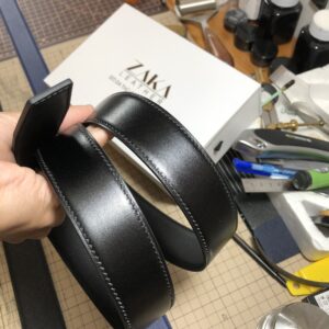 Dây lưng da Box Pháp trơn đen Bóng (TL16001)